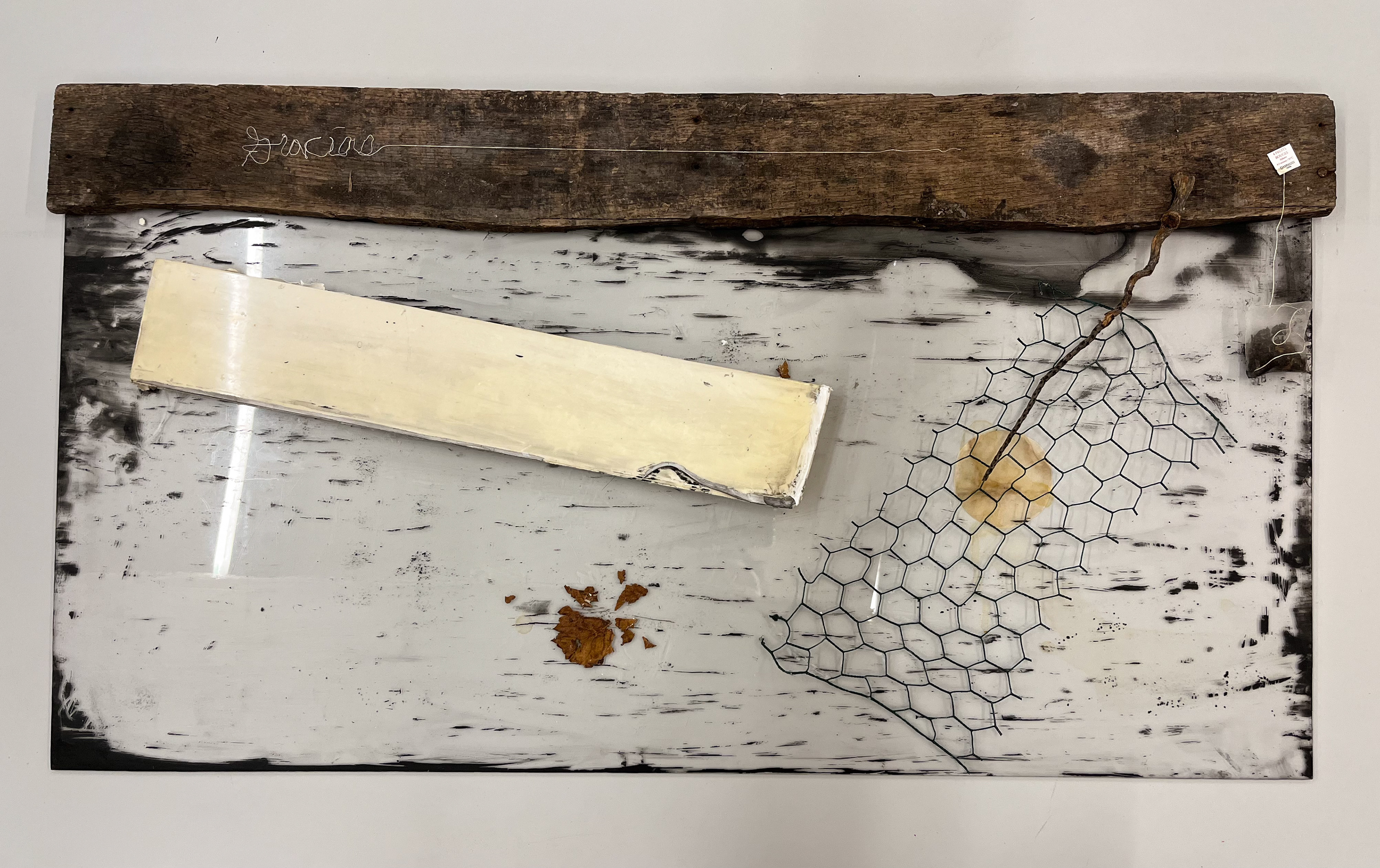 Scattered Debris, 48" x 36", found wood, plexi glass, leaf, and gesso, 2022